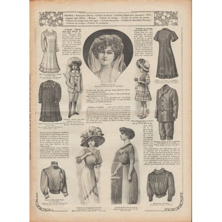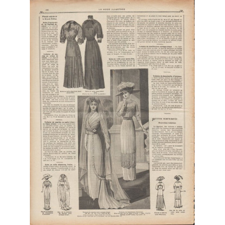 Chaque magazine présentait des modèles de robes , de lingerie , de corsets , mais aussi des vêtements d’enfants ou habits de poupées , avec de magnifiques gravures et les explications des modèles .