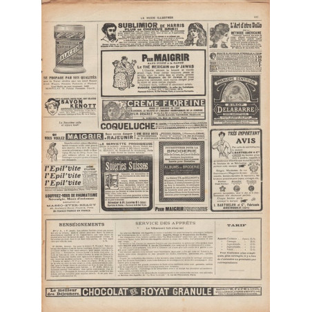 La Mode Illustrée paraissait toutes les semaines, et était accompagnée d’une planche de patrons tous les quinze jours en moyenne.