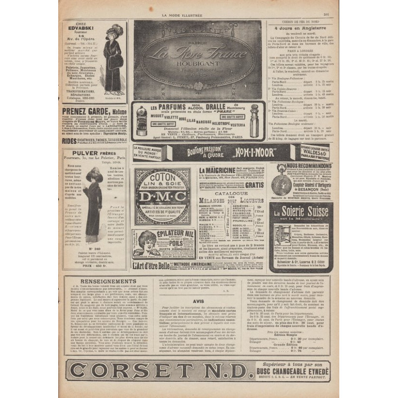La Mode Illustrée paraissait toutes les semaines, et était accompagnée d’une planche de patrons tous les quinze jours en moyenne.