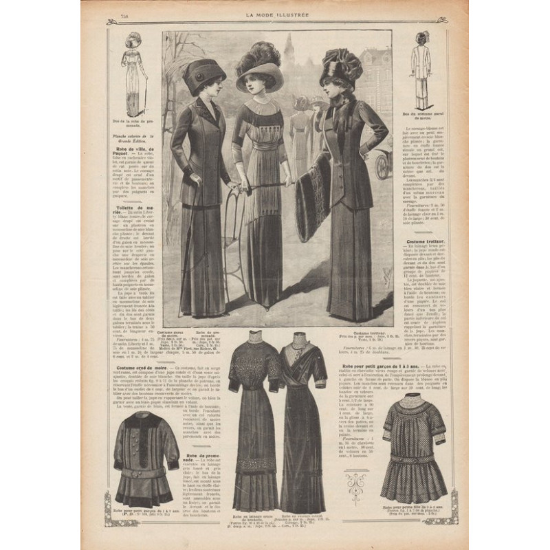 La Mode Illustrée paraissait toutes les semaines, et était accompagnée d’une planche de patrons tous les quinze jours en moyenne.