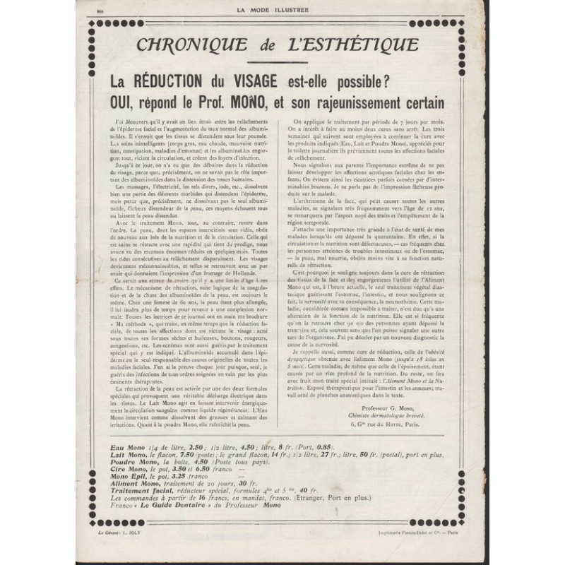 La Mode Illustrée paraissait toutes les semaines, et était accompagnée d’une planche de patrons tous les quinze jours en moyenne.