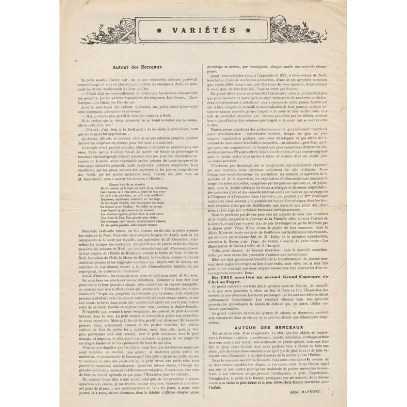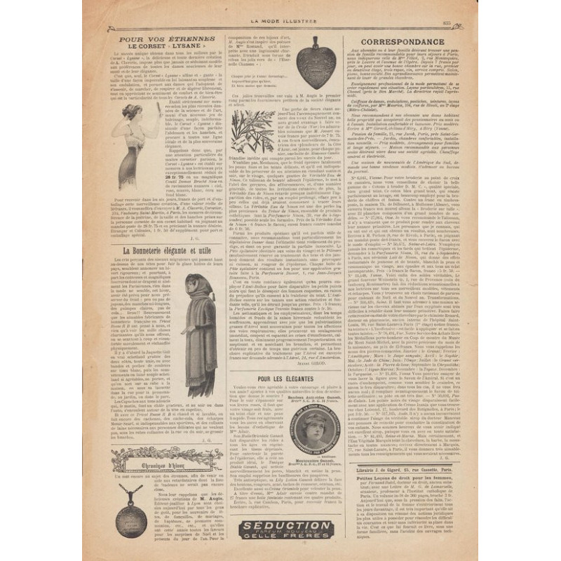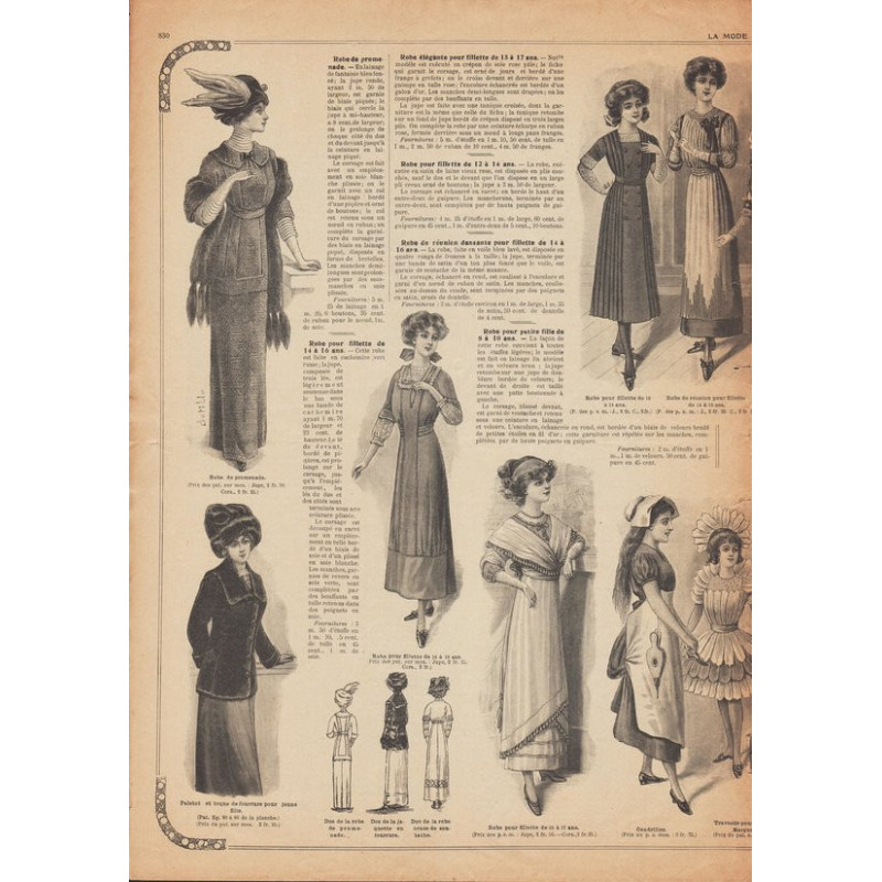 Chaque magazine présentait des modèles de robes , de lingerie , de corsets , mais aussi des vêtements d’enfants ou habits de poupées , avec de magnifiques gravures et les explications des modèles .