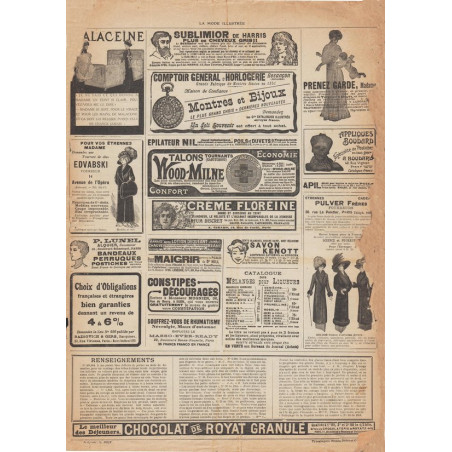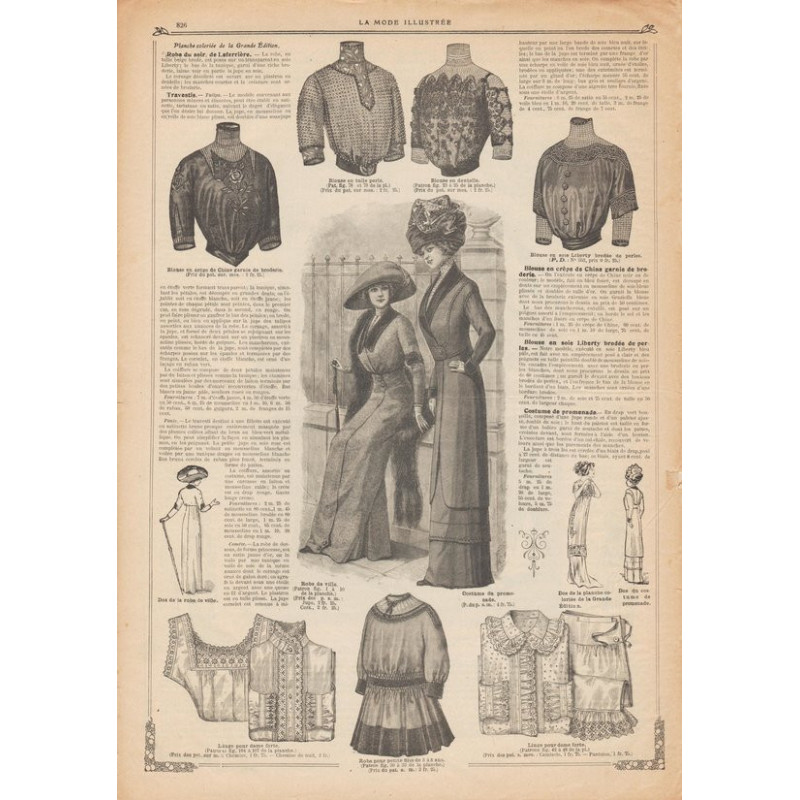 La Mode Illustrée paraissait toutes les semaines, et était accompagnée d’une planche de patrons tous les quinze jours en moyenne.