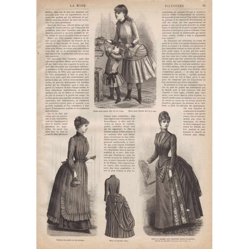 Chaque magazine présentait des modèles de robes , de lingerie , de corsets , mais aussi des vêtements d’enfants ou habits de poupées , avec de magnifiques gravures et les explications des modèles .