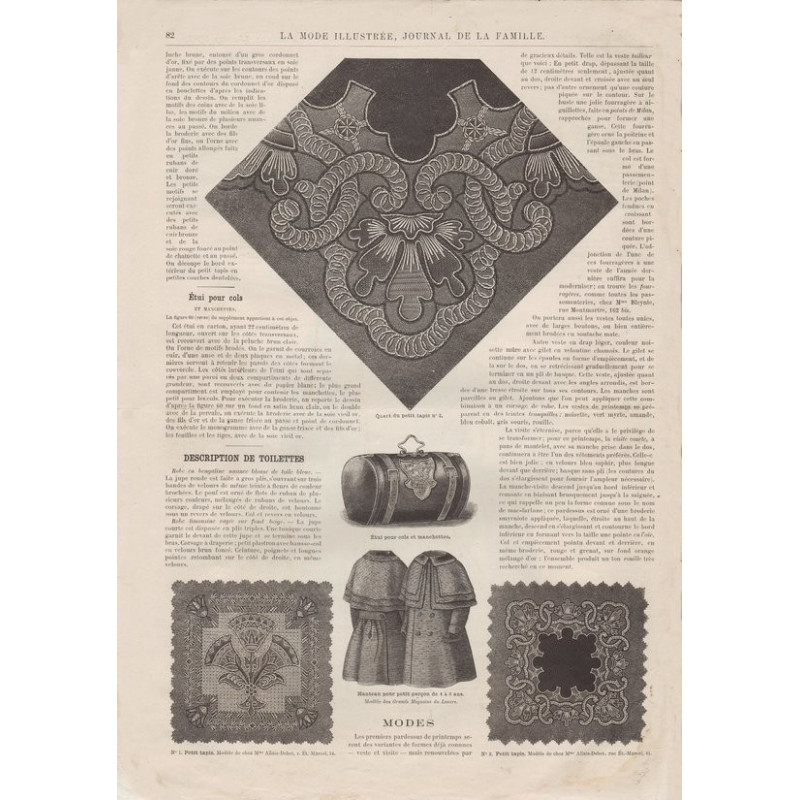 Chaque magazine présentait des modèles de robes , de lingerie , de corsets , mais aussi des vêtements d’enfants ou habits de poupées , avec de magnifiques gravures et les explications des modèles .