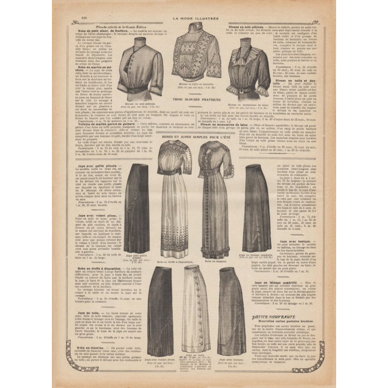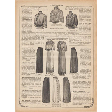 La Mode Illustrée paraissait toutes les semaines, et était accompagnée d’une planche de patrons tous les quinze jours en moyenne.