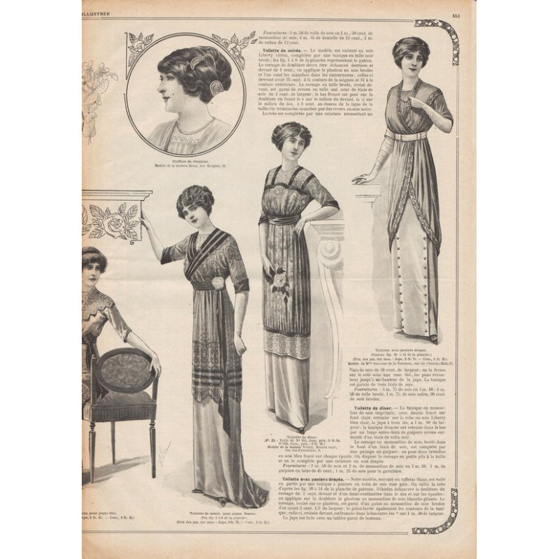 Chaque magazine présentait des modèles de robes , de lingerie , de corsets , mais aussi des vêtements d’enfants ou habits de poupées , avec de magnifiques gravures et les explications des modèles .