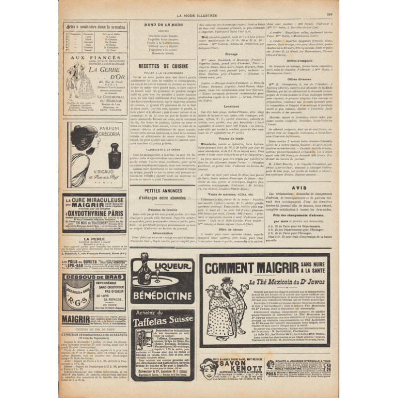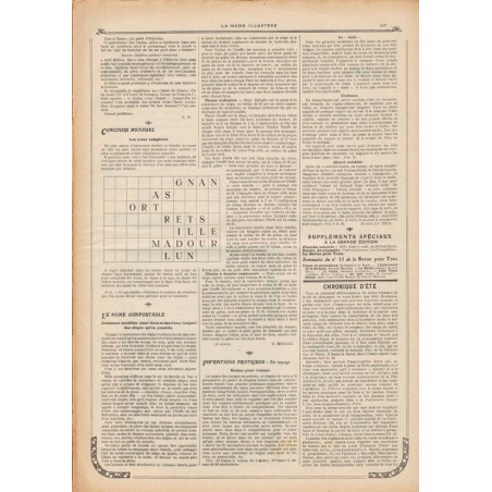 La Mode Illustrée paraissait toutes les semaines, et était accompagnée d’une planche de patrons tous les quinze jours en moyenne.