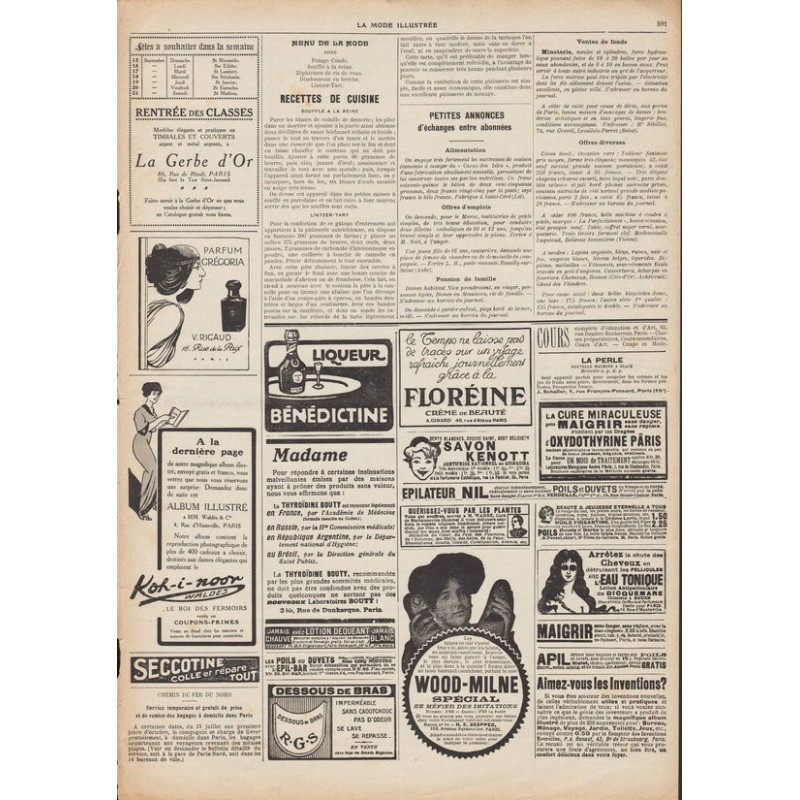 La Mode Illustrée paraissait toutes les semaines, et était accompagnée d’une planche de patrons tous les quinze jours en moyenne.