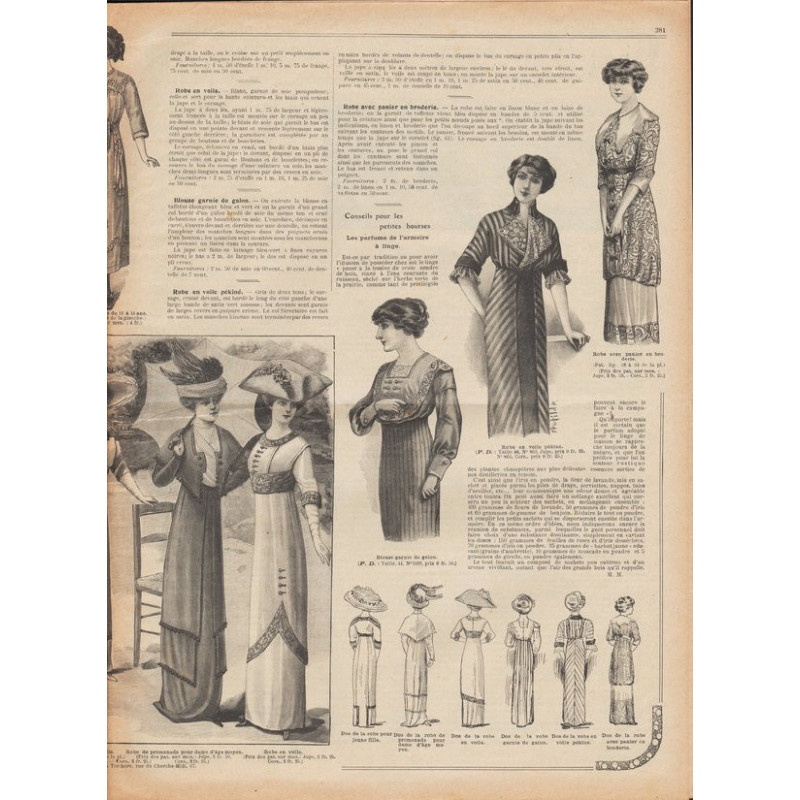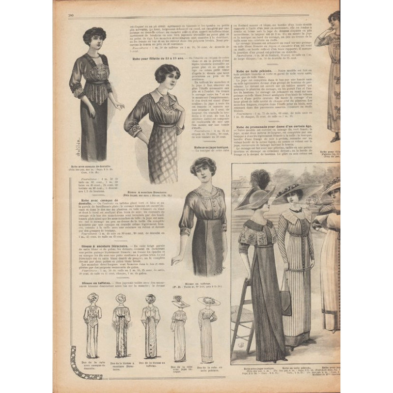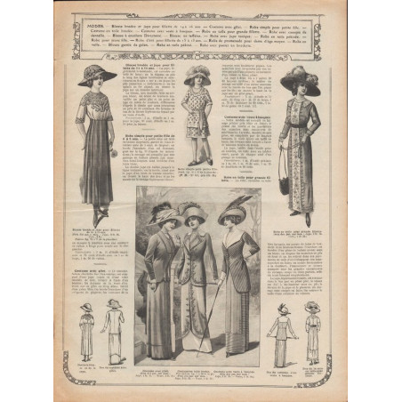 Chaque magazine présentait des modèles de robes , de lingerie , de corsets , mais aussi des vêtements d’enfants ou habits de poupées , avec de magnifiques gravures et les explications des modèles .