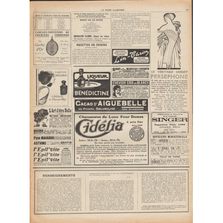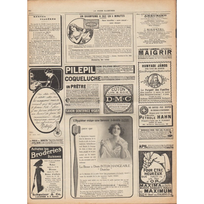 La Mode Illustrée paraissait toutes les semaines, et était accompagnée d’une planche de patrons tous les quinze jours en moyenne.