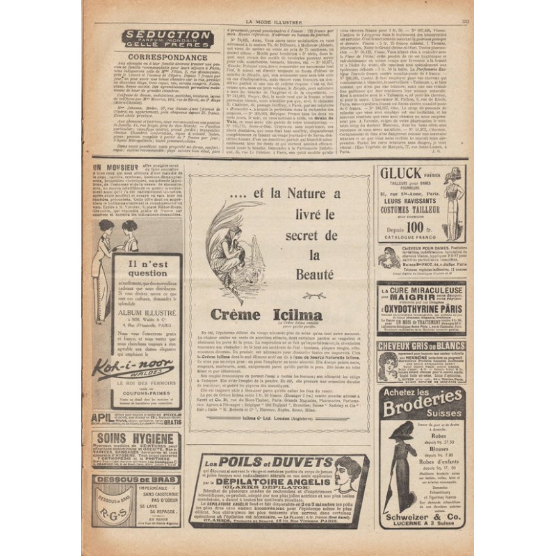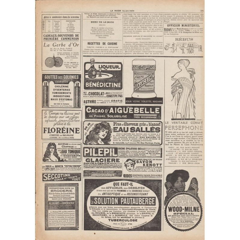 La Mode Illustrée paraissait toutes les semaines, et était accompagnée d’une planche de patrons tous les quinze jours en moyenne.