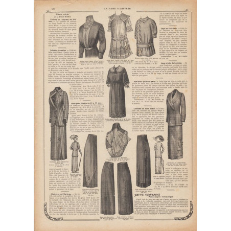 Chaque magazine présentait des modèles de robes , de lingerie , de corsets , mais aussi des vêtements d’enfants ou habits de poupées , avec de magnifiques gravures et les explications des modèles .