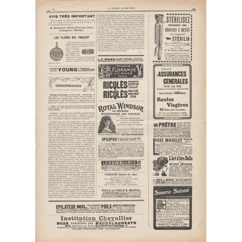 La Mode Illustrée paraissait toutes les semaines, et était accompagnée d’une planche de patrons tous les quinze jours en moyenne.