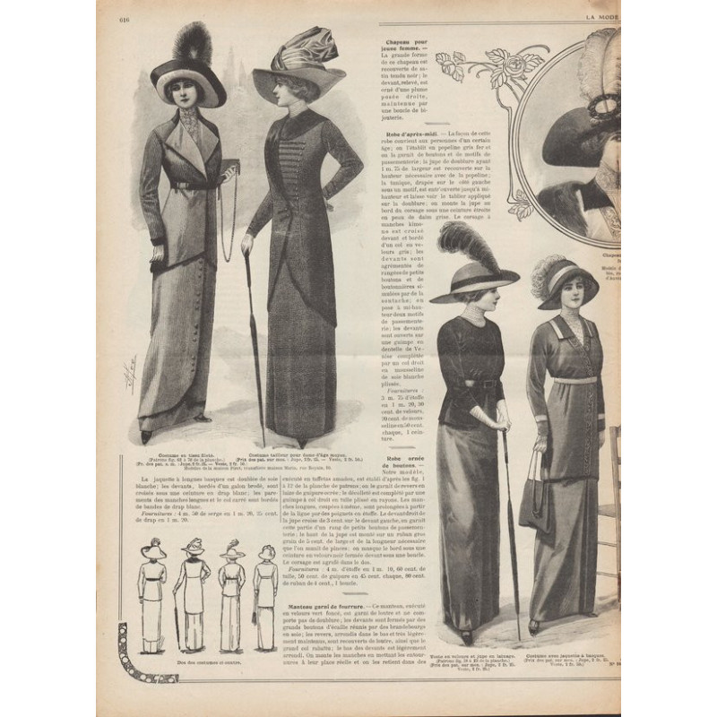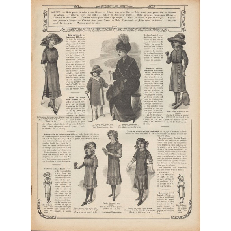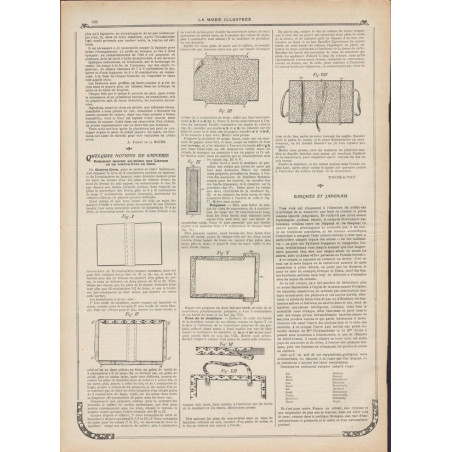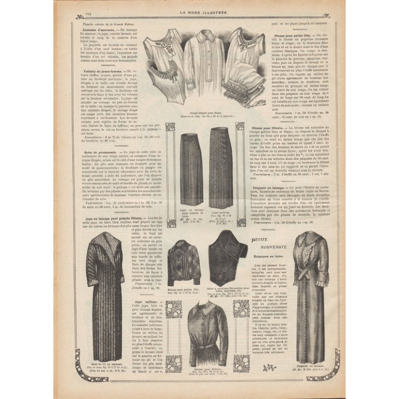 Chaque magazine présentait des modèles de robes , de lingerie , de corsets , mais aussi des vêtements d’enfants ou habits de poupées , avec de magnifiques gravures et les explications des modèles .