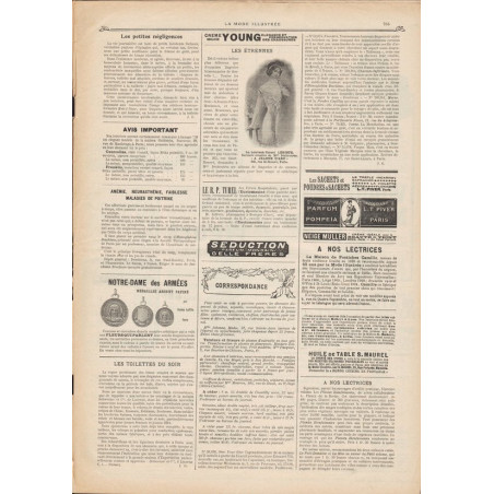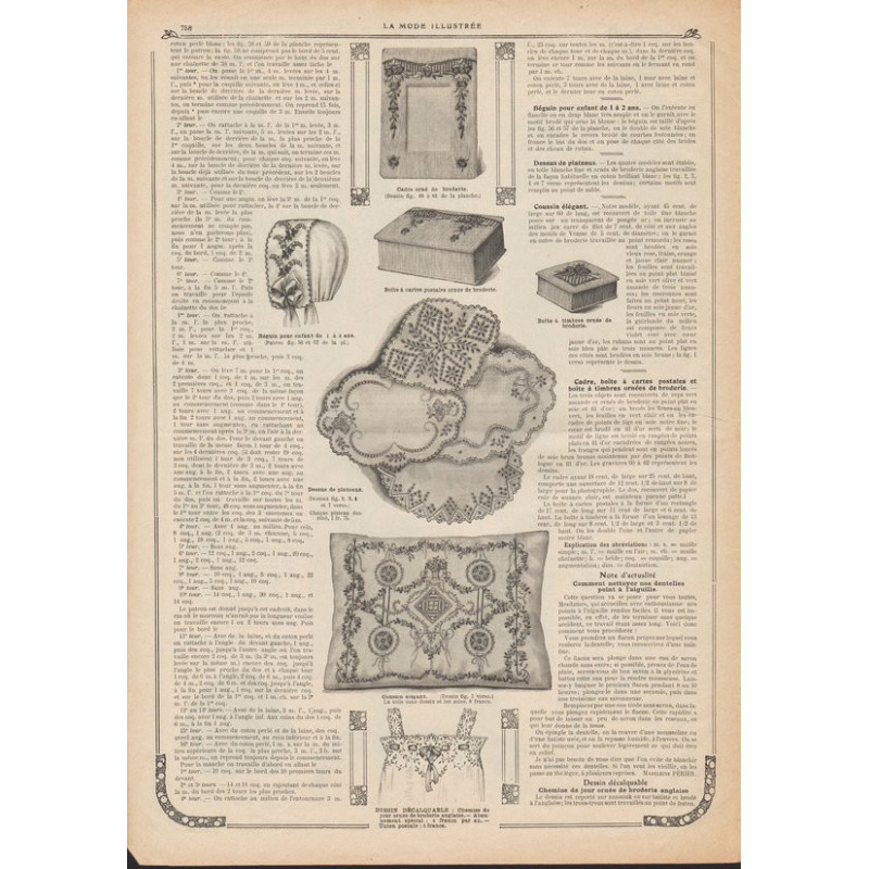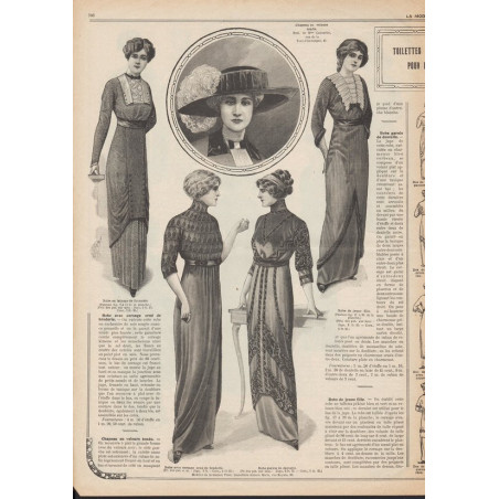 Chaque magazine présentait des modèles de robes , de lingerie , de corsets , mais aussi des vêtements d’enfants ou habits de poupées , avec de magnifiques gravures et les explications des modèles .