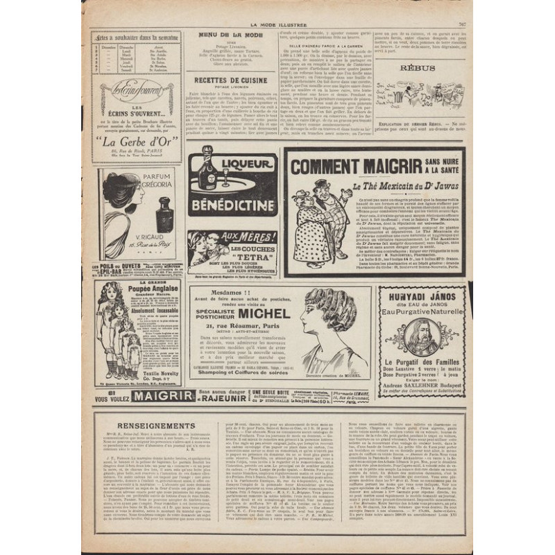 La Mode Illustrée paraissait toutes les semaines, et était accompagnée d’une planche de patrons tous les quinze jours en moyenne.