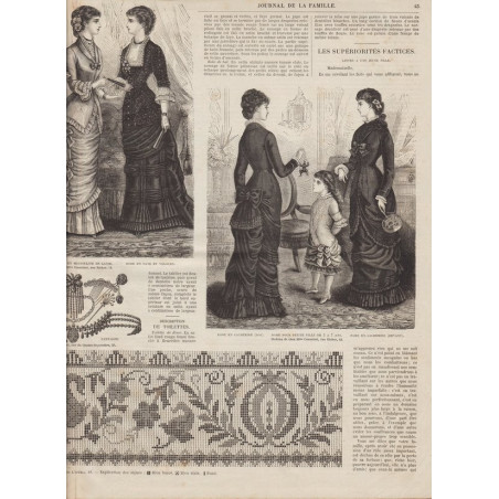 Chaque magazine présentait des modèles de robes , de lingerie , de corsets , mais aussi des vêtements d’enfants ou habits de poupées , avec de magnifiques gravures et les explications des modèles .