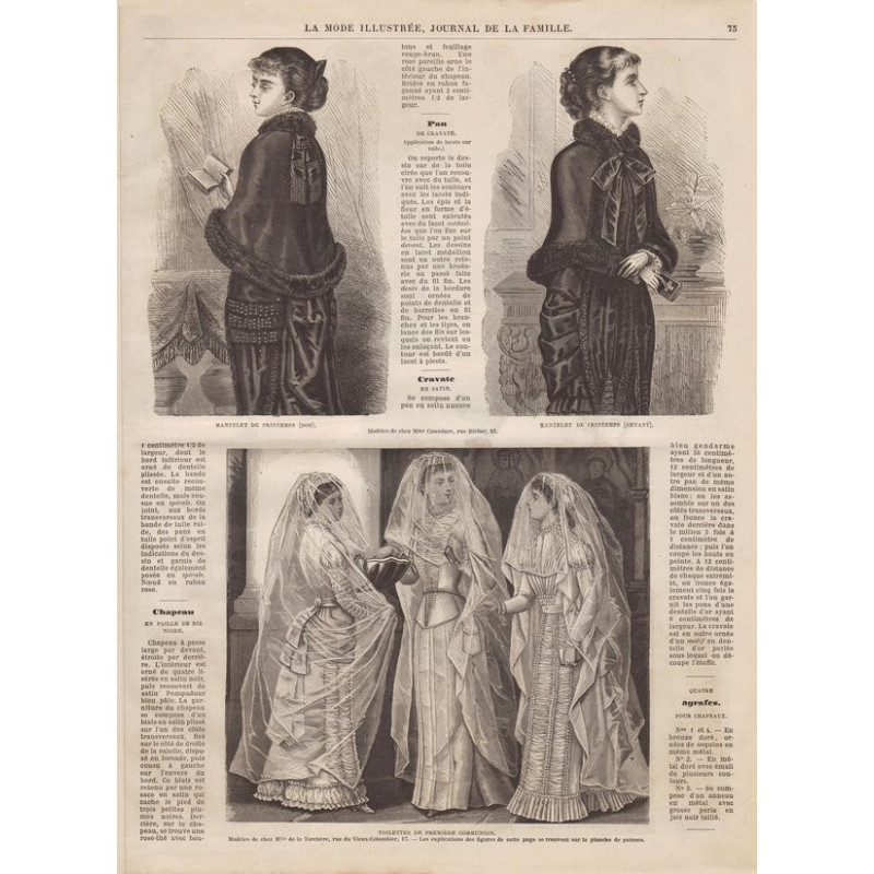 Chaque magazine présentait des modèles de robes , de lingerie , de corsets , mais aussi des vêtements d’enfants ou habits de poupées , avec de magnifiques gravures et les explications des modèles .