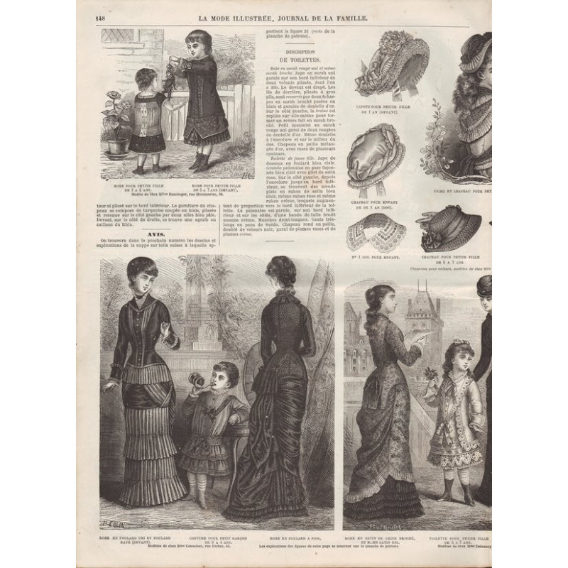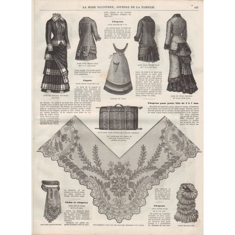 Chaque magazine présentait des modèles de robes , de lingerie , de corsets , mais aussi des vêtements d’enfants ou habits de poupées , avec de magnifiques gravures et les explications des modèles .