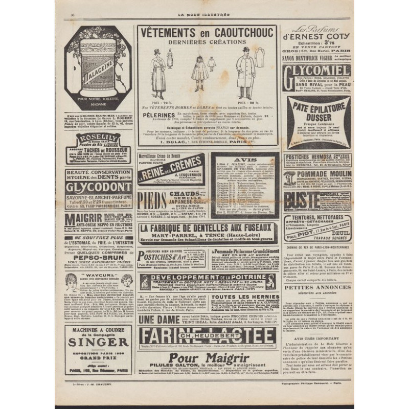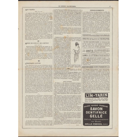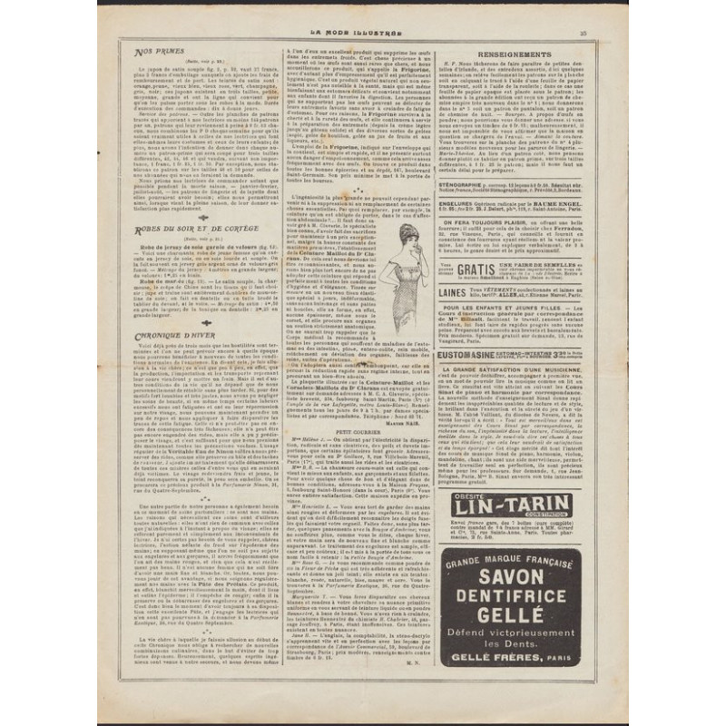 La Mode Illustrée paraissait toutes les semaines, et était accompagnée d’une planche de patrons tous les quinze jours en moyenne.