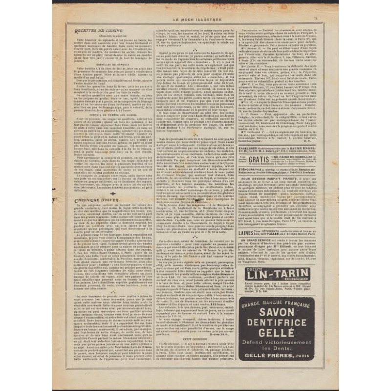 La Mode Illustrée paraissait toutes les semaines, et était accompagnée d’une planche de patrons tous les quinze jours en moyenne.