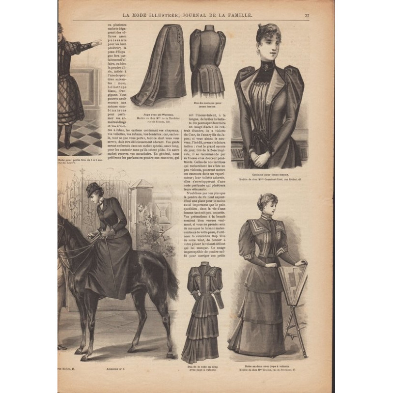 Chaque magazine présentait des modèles de robes , de lingerie , de corsets , mais aussi des vêtements d’enfants ou habits de poupées , avec de magnifiques gravures et les explications des modèles .