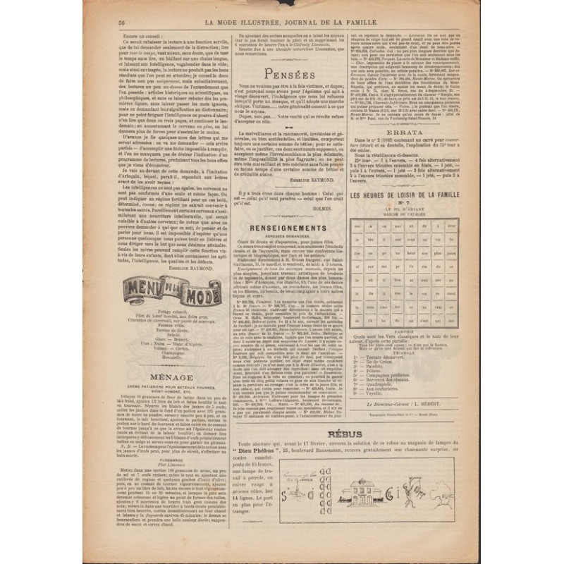 La Mode Illustrée paraissait toutes les semaines, et était accompagnée d’une planche de patrons tous les quinze jours en moyenne.