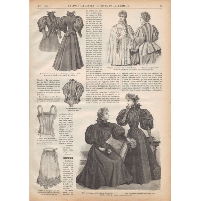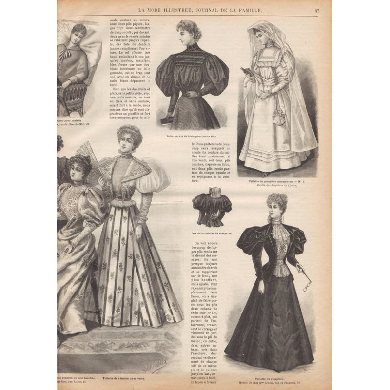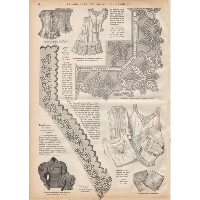 Chaque magazine présentait des modèles de robes , de lingerie , de corsets , mais aussi des vêtements d’enfants ou habits de poupées , avec de magnifiques gravures et les explications des modèles .