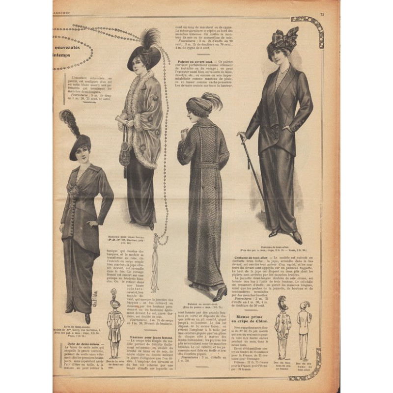 Chaque magazine présentait des modèles de robes , de lingerie , de corsets , mais aussi des vêtements d’enfants ou habits de poupées , avec de magnifiques gravures et les explications des modèles .