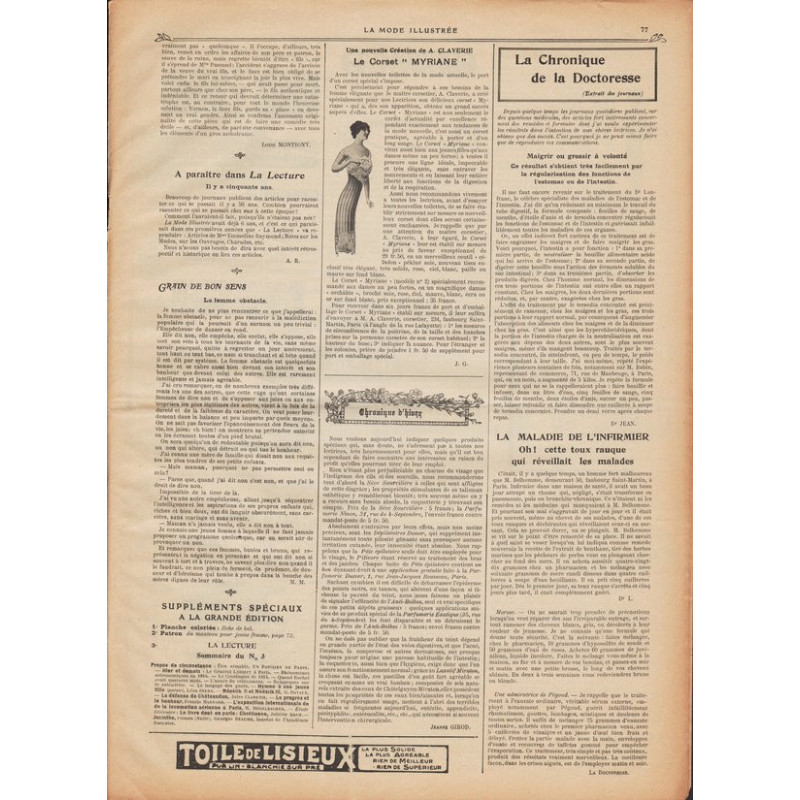La Mode Illustrée paraissait toutes les semaines, et était accompagnée d’une planche de patrons tous les quinze jours en moyenne.