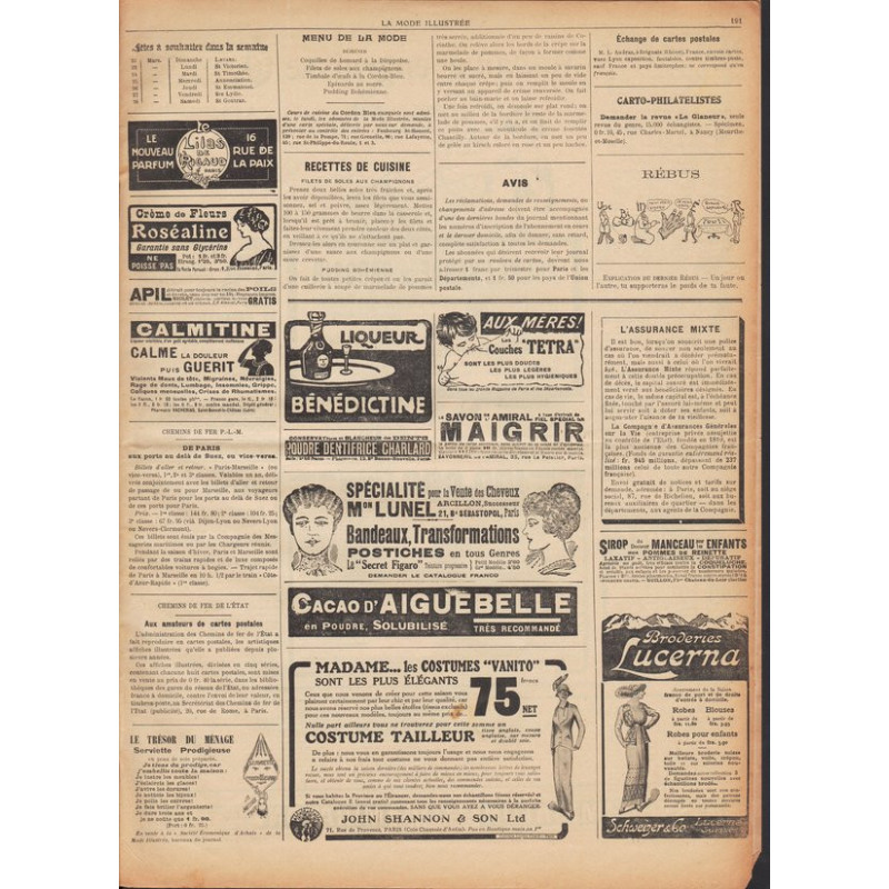 La Mode Illustrée paraissait toutes les semaines, et était accompagnée d’une planche de patrons tous les quinze jours en moyenne.