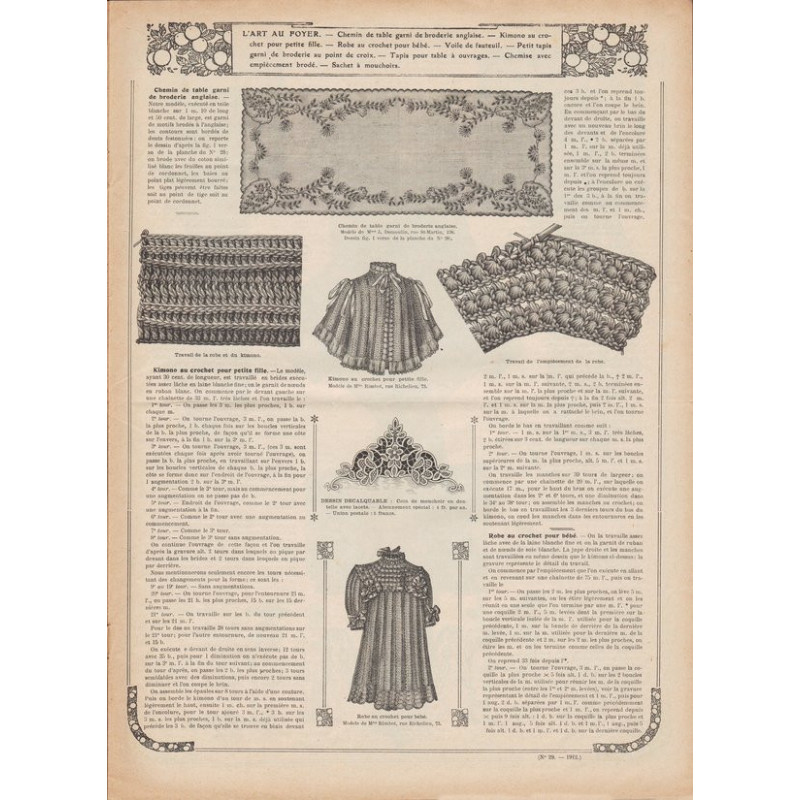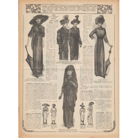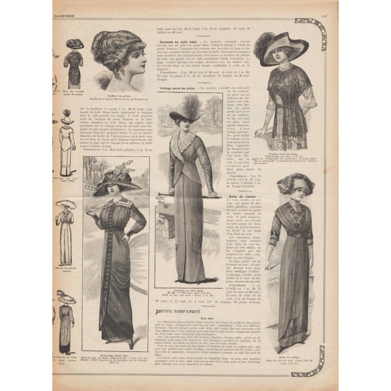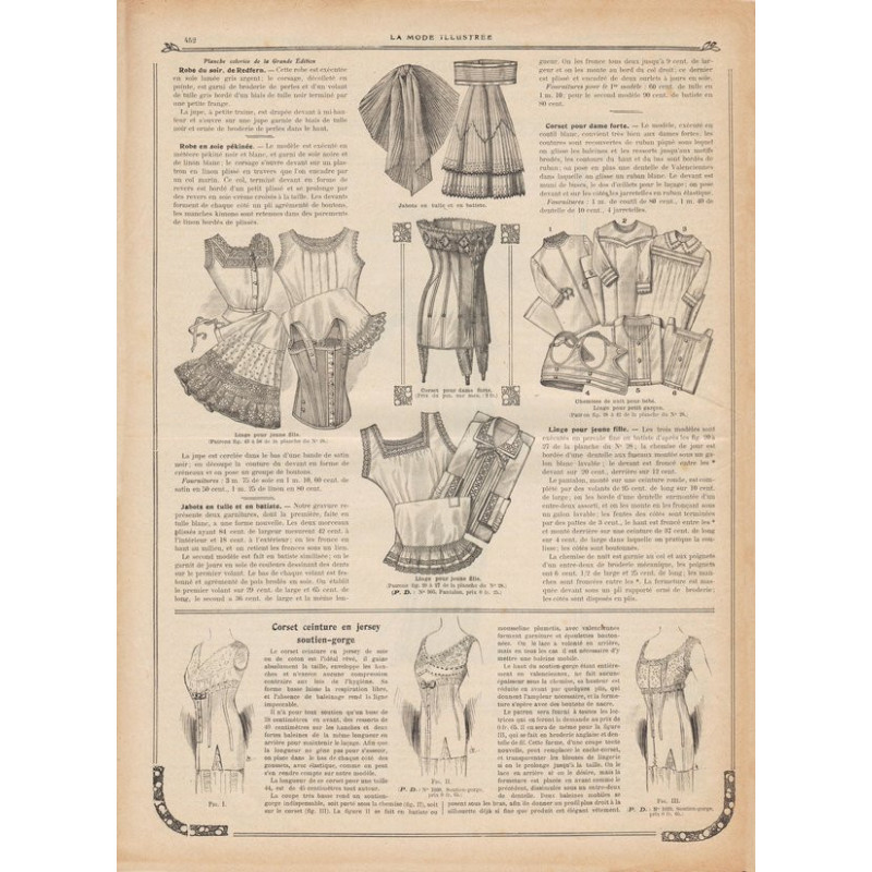 Chaque magazine présentait des modèles de robes , de lingerie , de corsets , mais aussi des vêtements d’enfants ou habits de poupées , avec de magnifiques gravures et les explications des modèles .