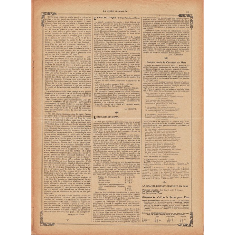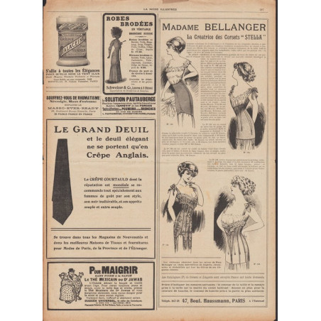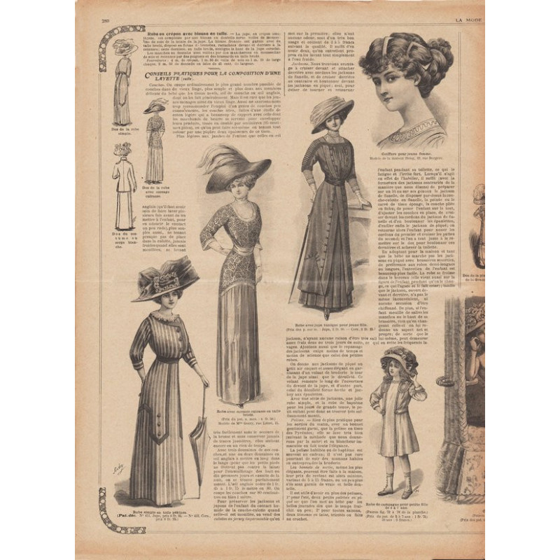 Chaque magazine présentait des modèles de robes , de lingerie , de corsets , mais aussi des vêtements d’enfants ou habits de poupées , avec de magnifiques gravures et les explications des modèles .
