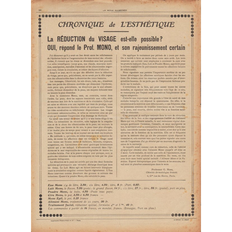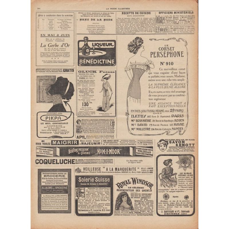 La Mode Illustrée paraissait toutes les semaines, et était accompagnée d’une planche de patrons tous les quinze jours en moyenne.