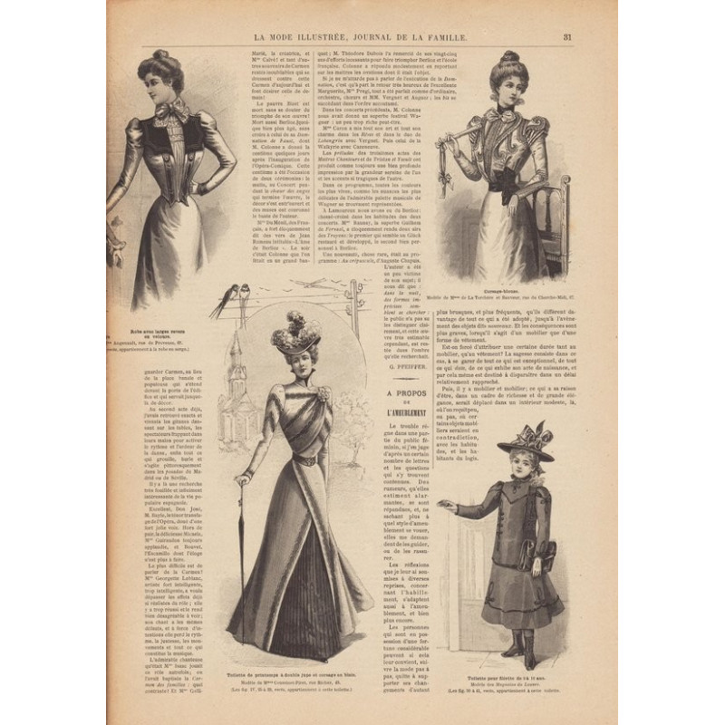 Chaque magazine présentait des modèles de robes , de lingerie , de corsets , mais aussi des vêtements d’enfants ou habits de poupées , avec de magnifiques gravures et les explications des modèles .