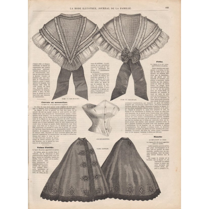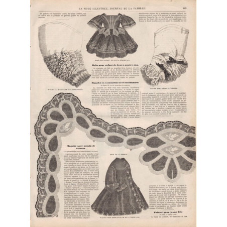 Chaque magazine présentait des modèles de robes , de lingerie , de corsets , mais aussi des vêtements d’enfants ou habits de poupées , avec de magnifiques gravures et les explications des modèles .