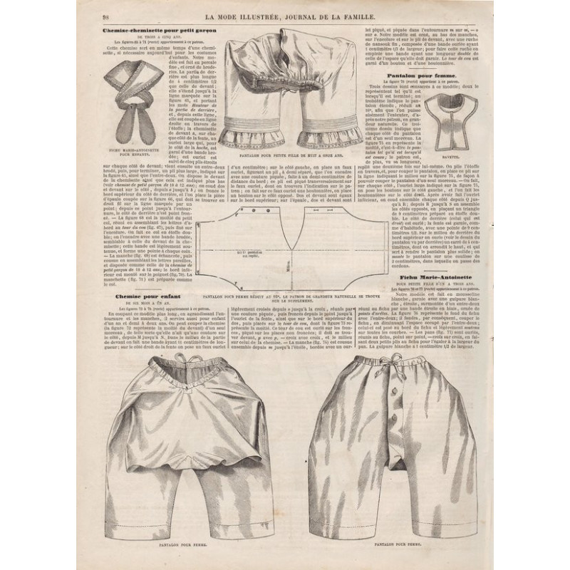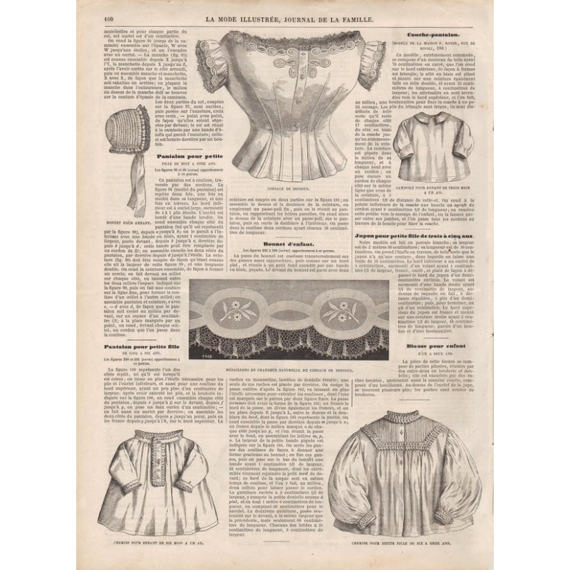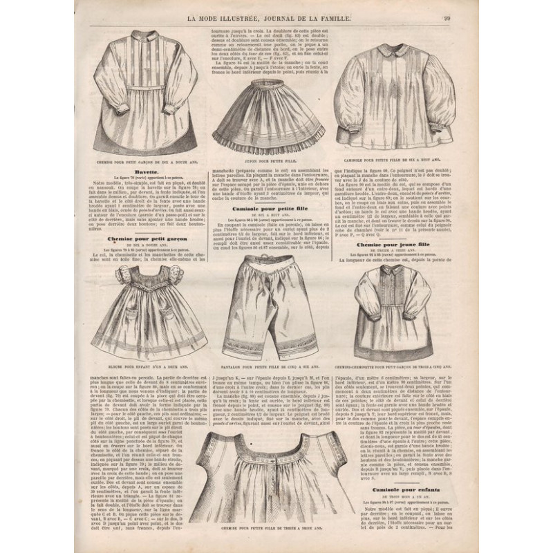 Chaque magazine présentait des modèles de robes , de lingerie , de corsets , mais aussi des vêtements d’enfants ou habits de poupées , avec de magnifiques gravures et les explications des modèles .