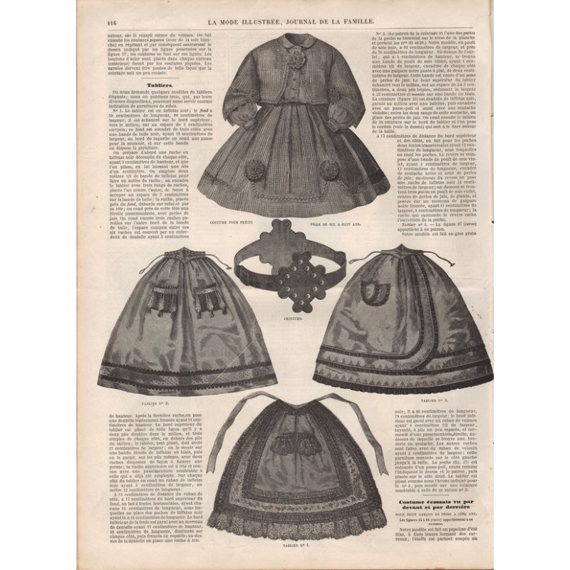 Chaque magazine présentait des modèles de robes , de lingerie , de corsets , mais aussi des vêtements d’enfants ou habits de poupées , avec de magnifiques gravures et les explications des modèles .