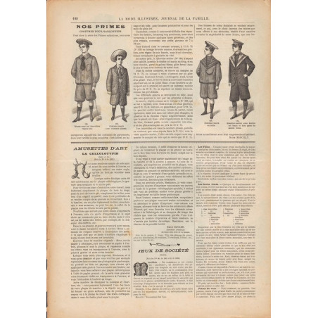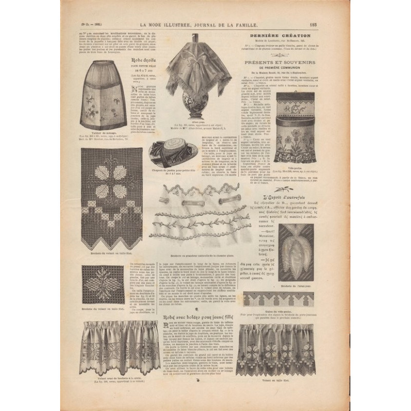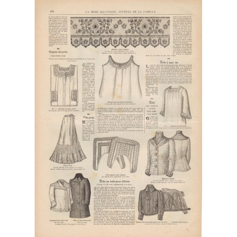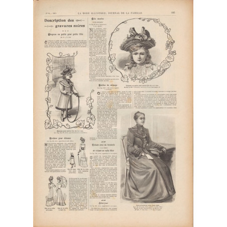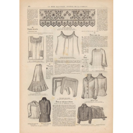 Chaque magazine présentait des modèles de robes , de lingerie , de corsets , mais aussi des vêtements d’enfants ou habits de poupées , avec de magnifiques gravures et les explications des modèles .