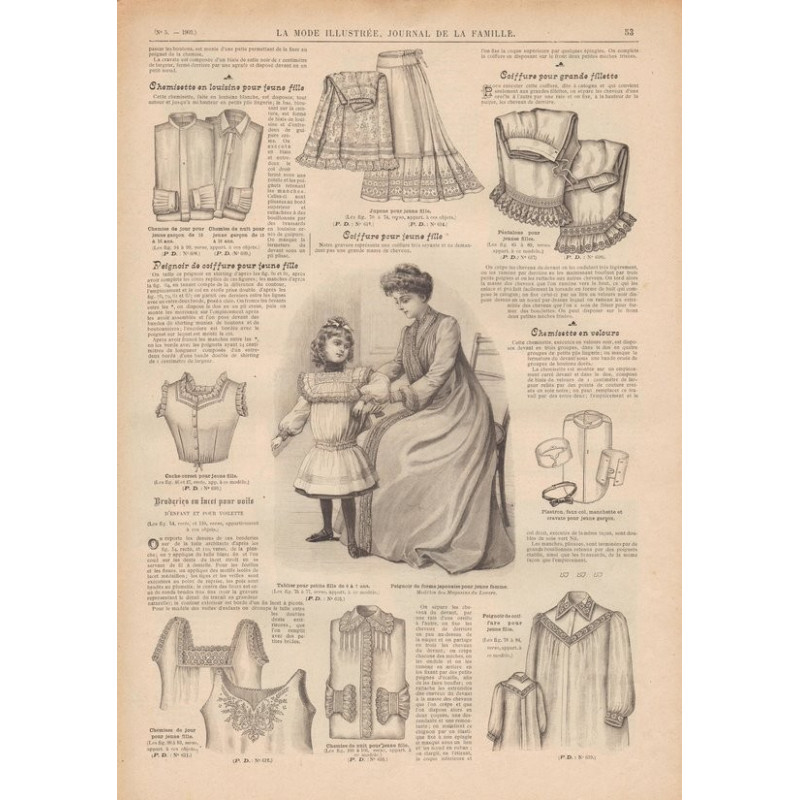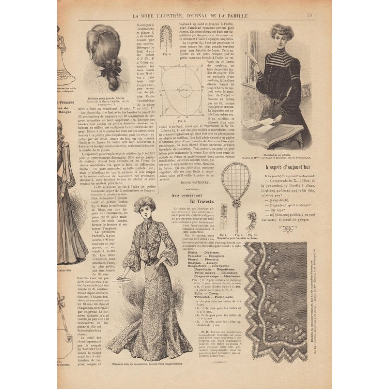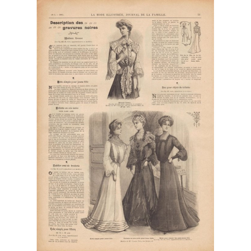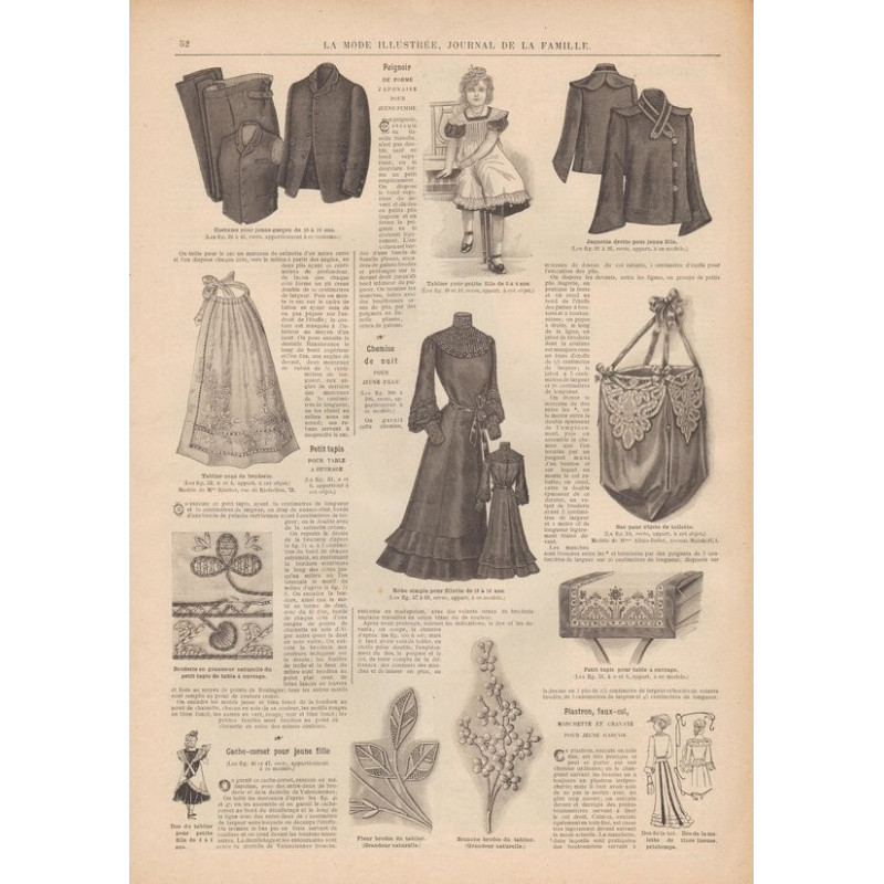 Chaque magazine présentait des modèles de robes , de lingerie , de corsets , mais aussi des vêtements d’enfants ou habits de poupées , avec de magnifiques gravures et les explications des modèles .