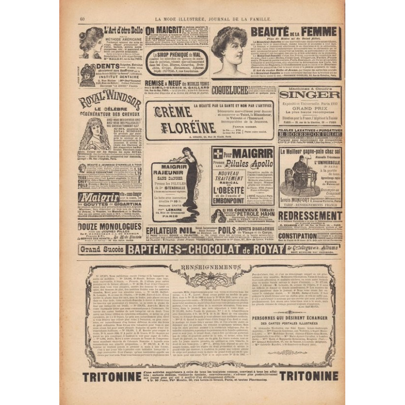 La Mode Illustrée paraissait toutes les semaines, et était accompagnée d’une planche de patrons tous les quinze jours en moyenne.