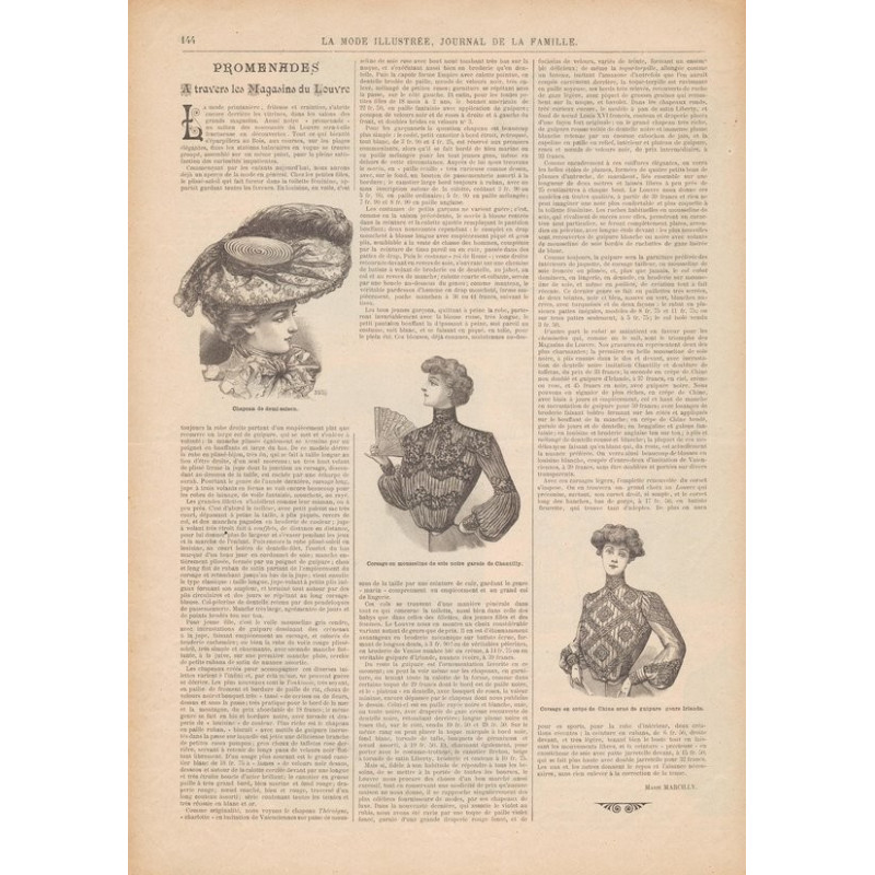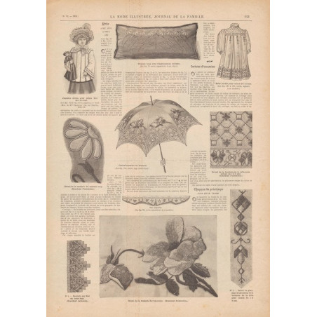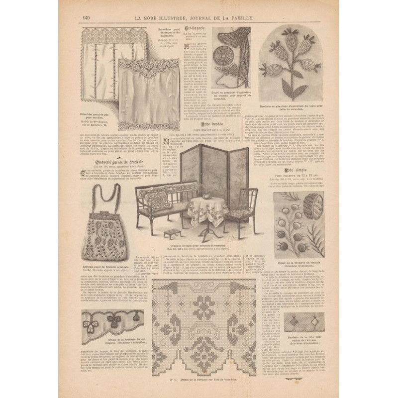 Chaque magazine présentait des modèles de robes , de lingerie , de corsets , mais aussi des vêtements d’enfants ou habits de poupées , avec de magnifiques gravures et les explications des modèles .