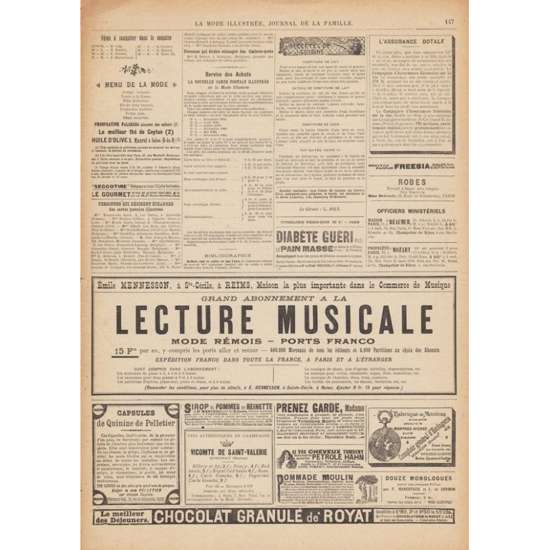 La Mode Illustrée paraissait toutes les semaines, et était accompagnée d’une planche de patrons tous les quinze jours en moyenne.