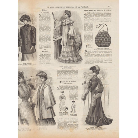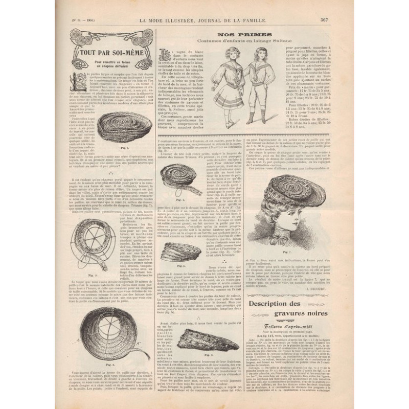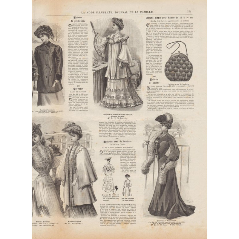 Chaque magazine présentait des modèles de robes , de lingerie , de corsets , mais aussi des vêtements d’enfants ou habits de poupées , avec de magnifiques gravures et les explications des modèles .