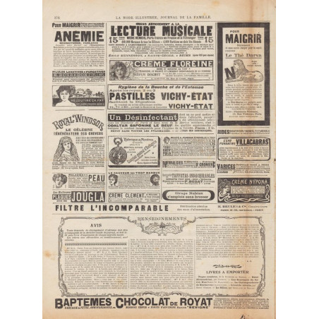La Mode Illustrée paraissait toutes les semaines, et était accompagnée d’une planche de patrons tous les quinze jours en moyenne.