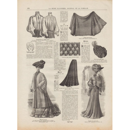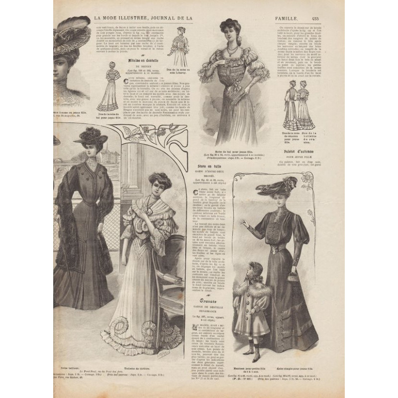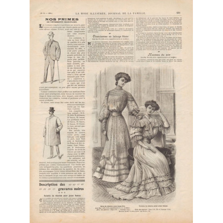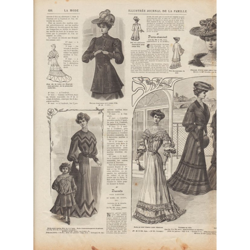 Chaque magazine présentait des modèles de robes , de lingerie , de corsets , mais aussi des vêtements d’enfants ou habits de poupées , avec de magnifiques gravures et les explications des modèles .