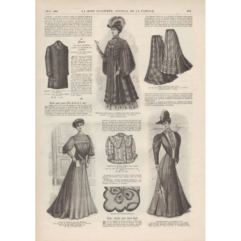 Chaque magazine présentait des modèles de robes , de lingerie , de corsets , mais aussi des vêtements d’enfants ou habits de poupées , avec de magnifiques gravures et les explications des modèles .