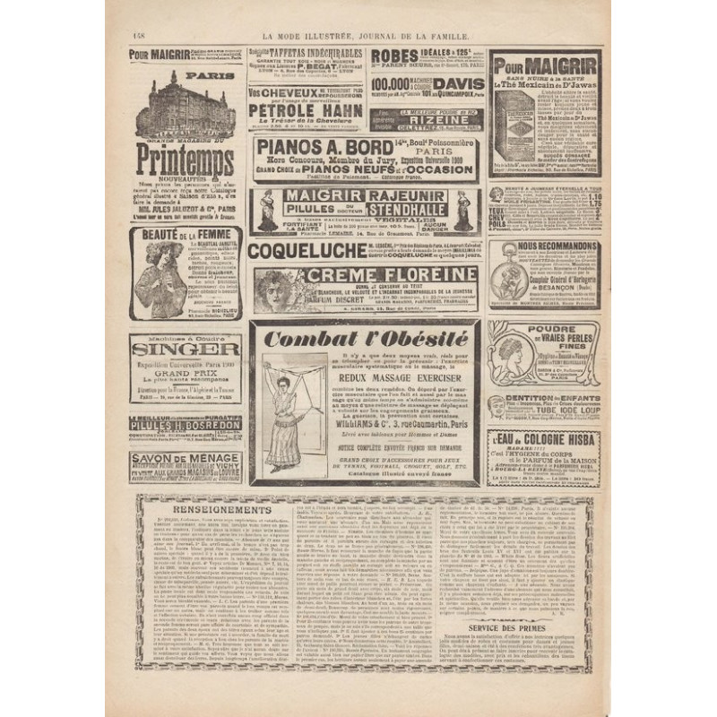 La Mode Illustrée paraissait toutes les semaines, et était accompagnée d’une planche de patrons tous les quinze jours en moyenne.