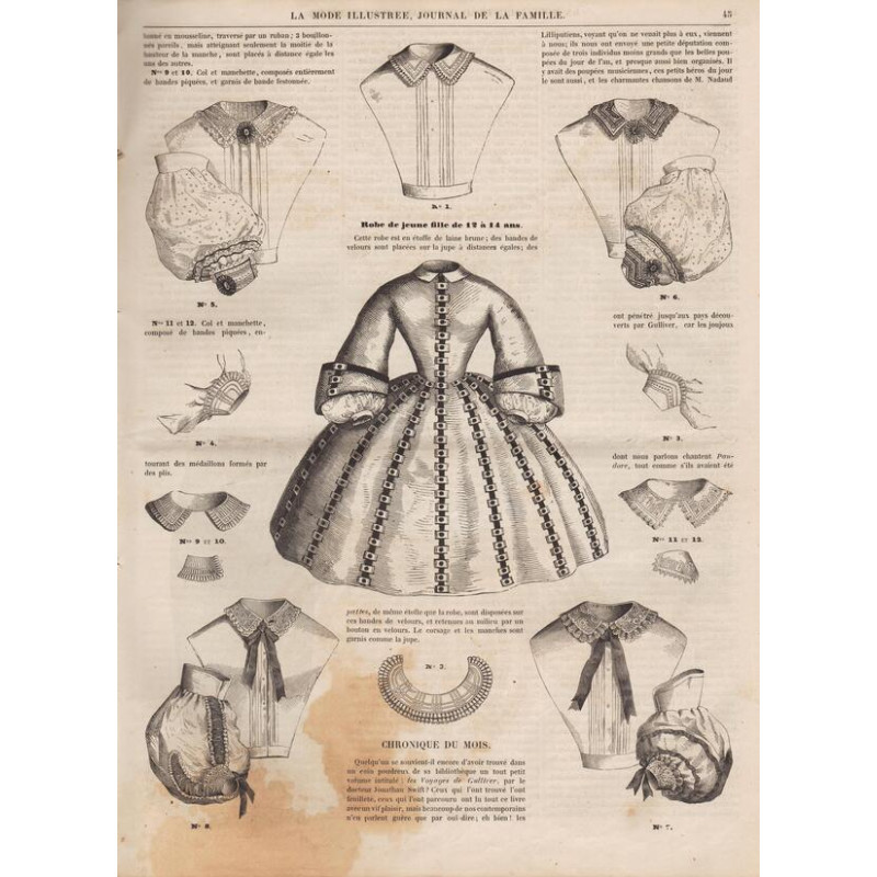Chaque magazine présentait des modèles de robes , de lingerie , de corsets , mais aussi des vêtements d’enfants ou habits de poupées , avec de magnifiques gravures et les explications des modèles .